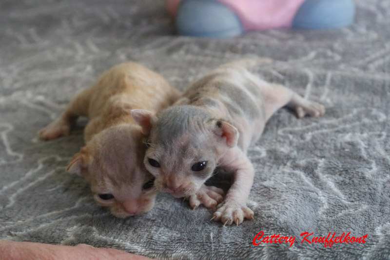 Onze familienaam wordt Knuffelkont en zijn in Oldeberkoop geboren op 25 maart om 6:35, 6:54, en 26 maart 0m 17:27 uur. Helaas is het rode/witte meisje geboren op 25 maart om 6:54 dezelfde dag overleden. Wil je meer weten over onze afkomst kijk dan op onze concept stamboom. We heb een totaal inteelt van 18,8%.
